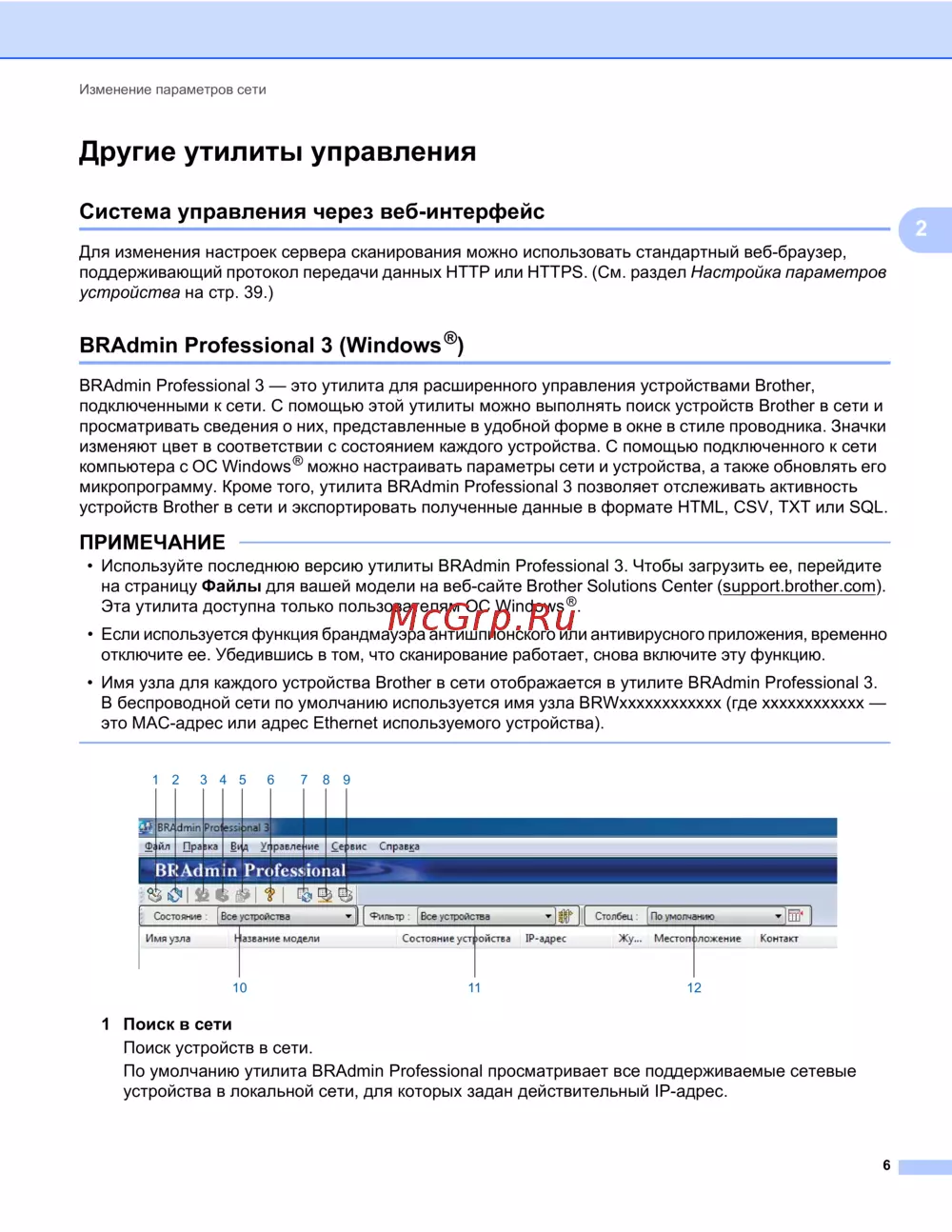 По умолчанию утилита BRAdmin Professional просматривает все поддерживаемые сетевые