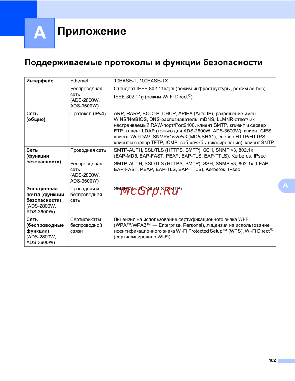 FTP, клиент LDAP (только для ADS-2800W, ADS-3600W), клиент CIFS,