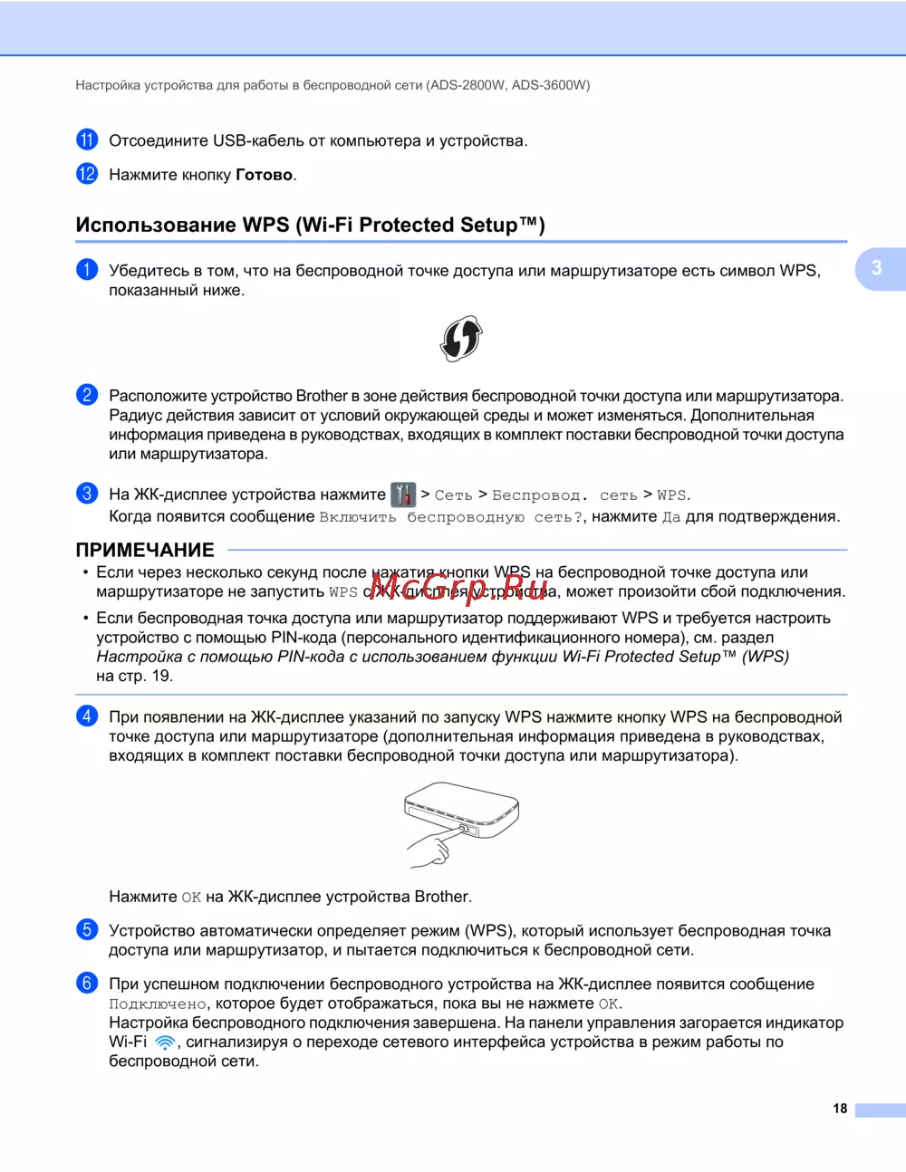 Использование WPS (Wi-Fi Protected Setup™) 3