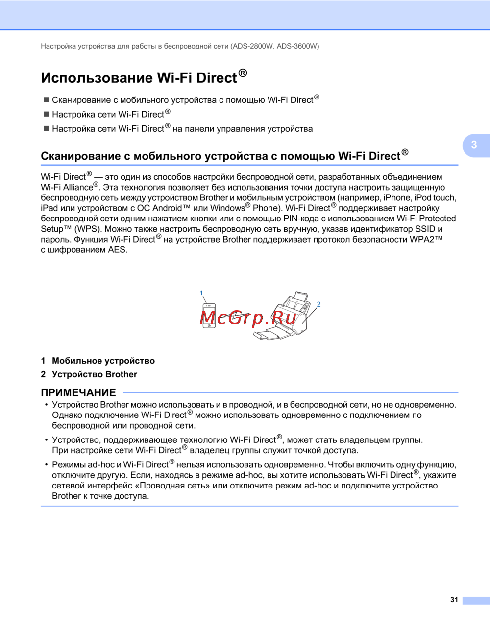 Brother ADS-2400N — настройка беспроводной сети с использованием Wi-Fi Direct [35/118]