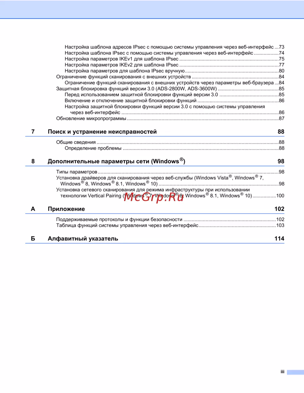 - Изменение конфигурации функции сканирования в сетевую папку window p.112
