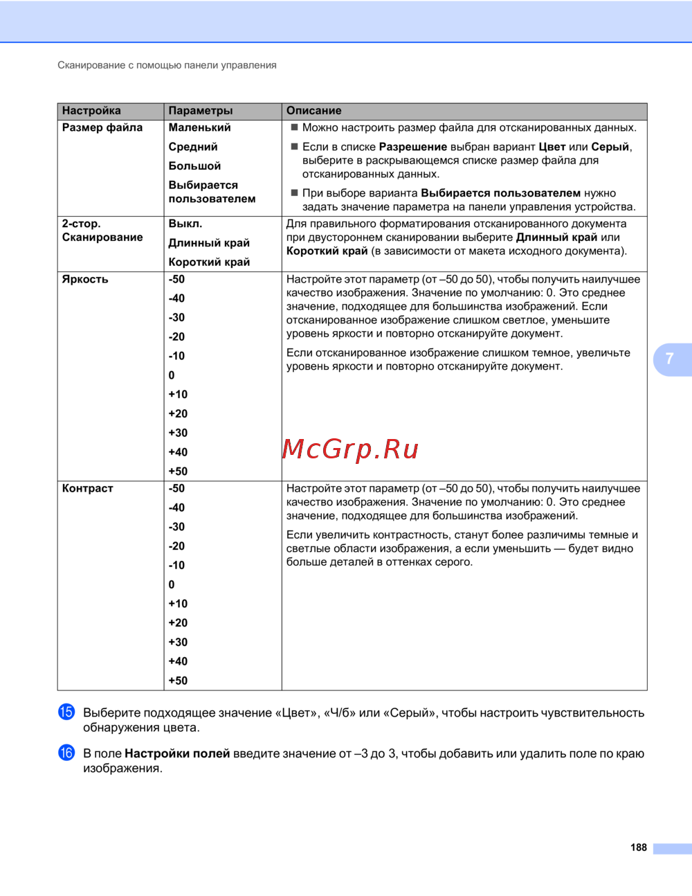 - При использовании для сканирования панели управления устройства brother и компьютера p.332