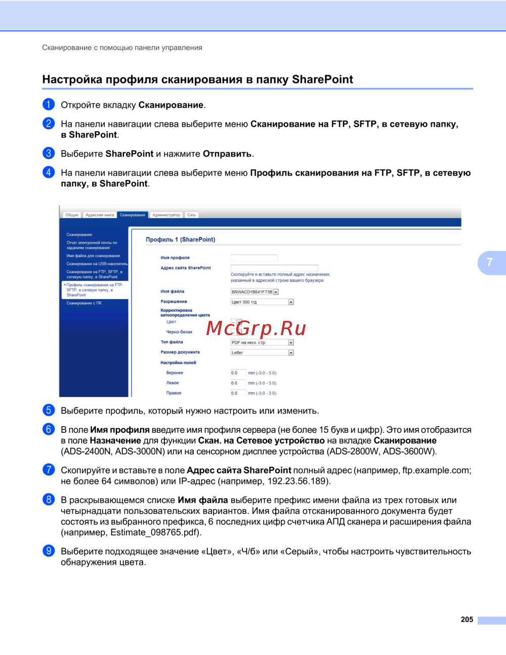 Brother ADS-2400N [221/338] Настройка профиля сканирования в папку sharepoint