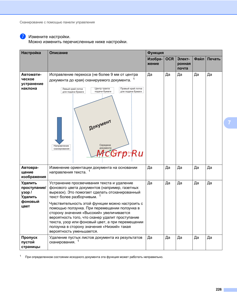 - При использовании для сканирования устройства brother и компьютера p.329