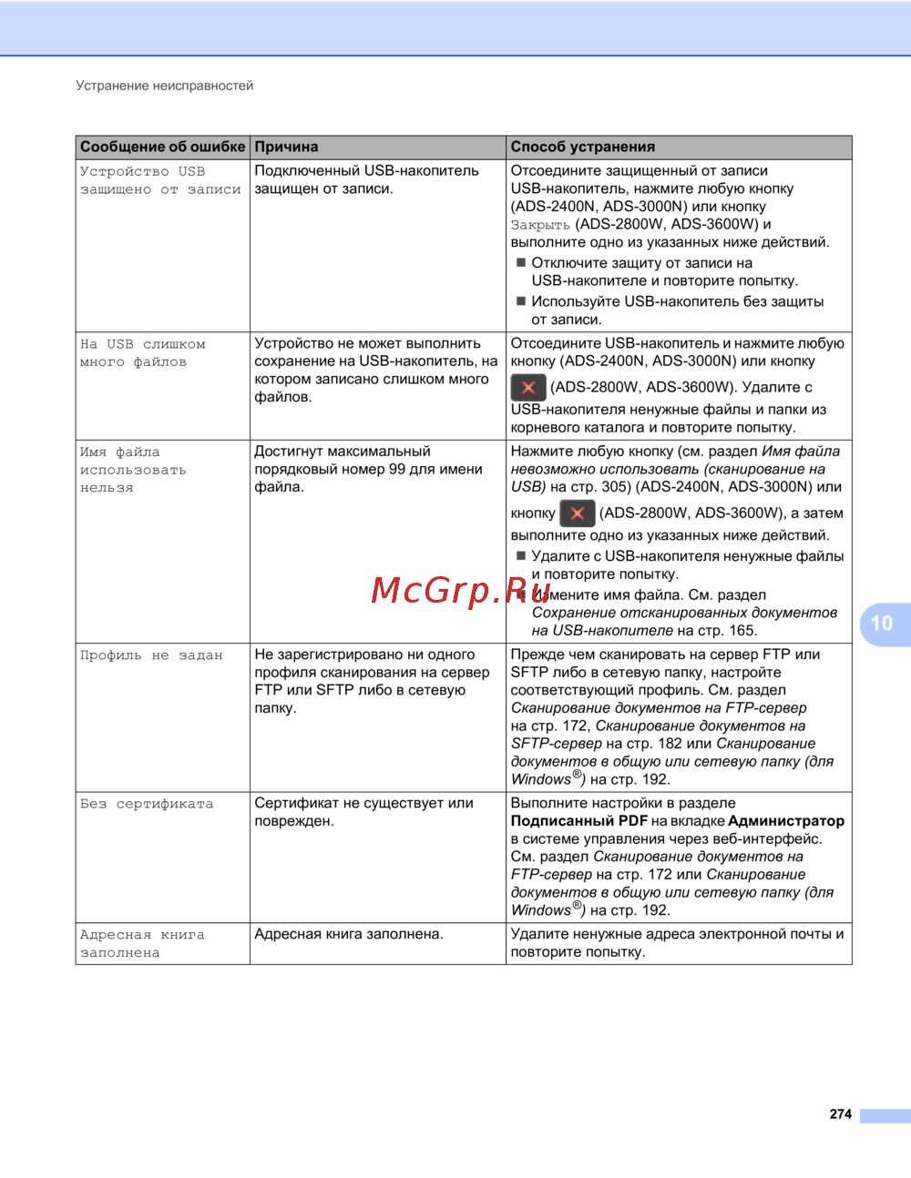 Brother ADS-2400N — устранение неисправностей USB-накопителей и сканирования документов [290/338]