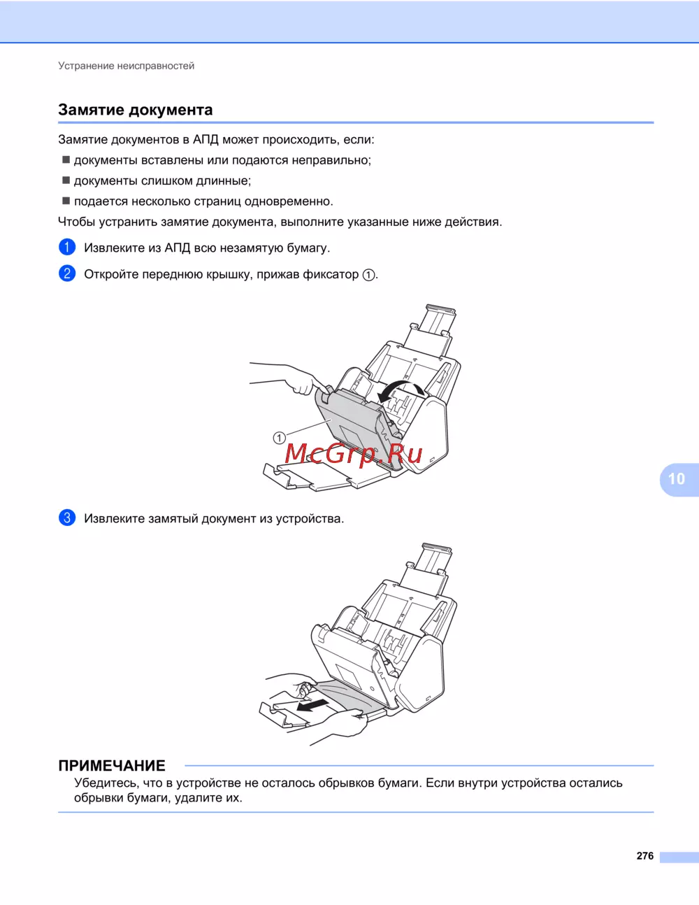 Убедитесь, что в устройстве не осталось обрывков бумаги. Если внутри устройства остались
