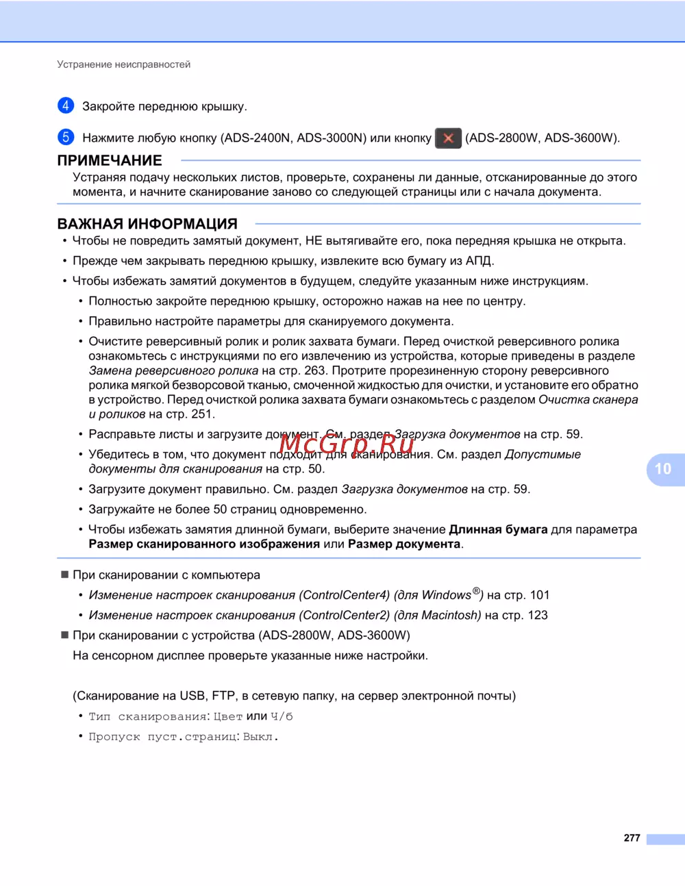 Brother ADS-2400N — устранение неисправностей при сканировании документов [293/338]