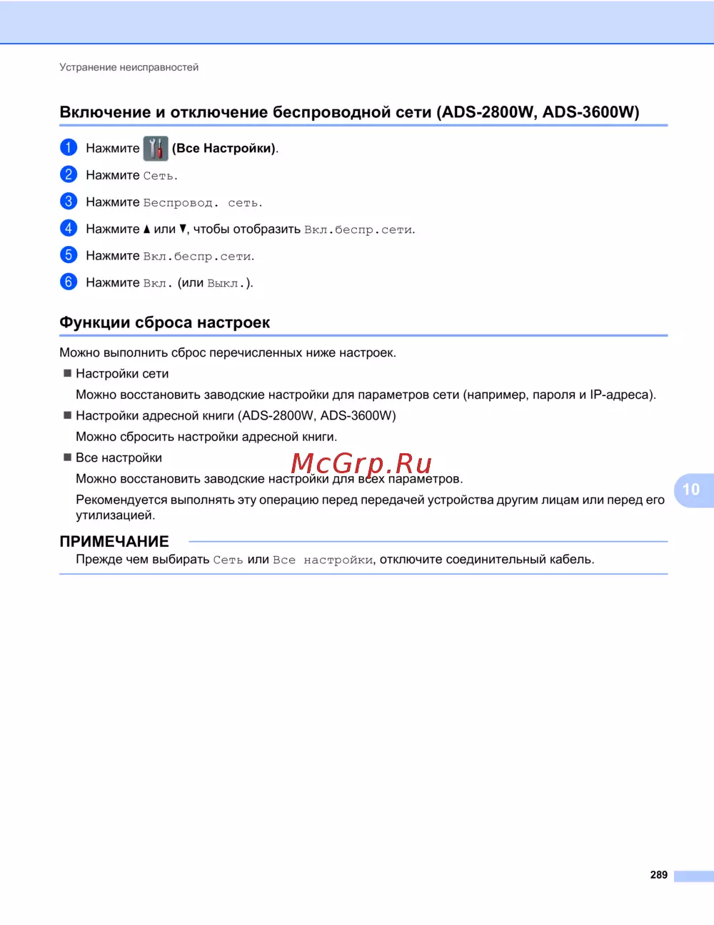 - Сброс настроек устройства ads 2800w ads 3600w p.307