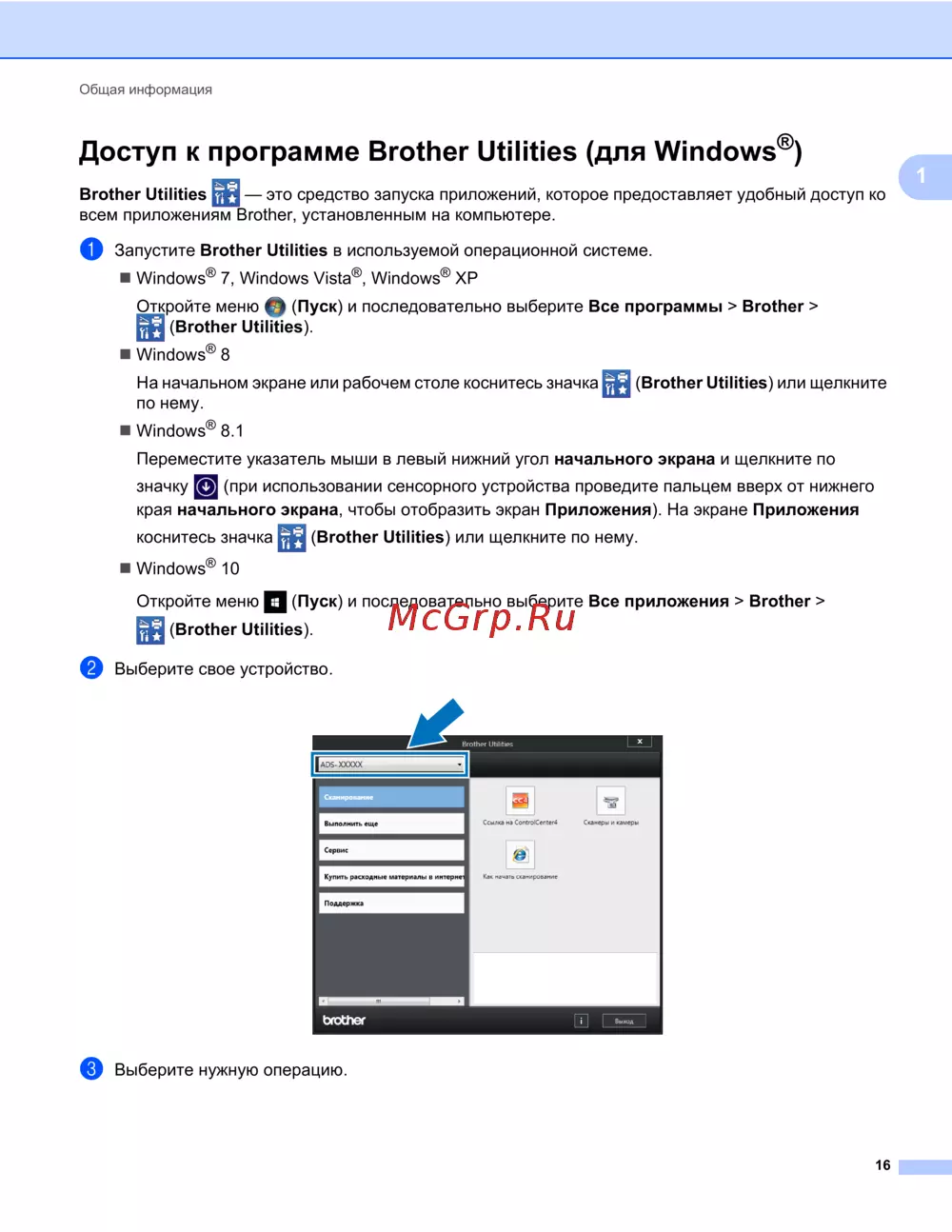 Brother Utilities — это средство запуска приложений, которое предоставляет удобный доступ ко