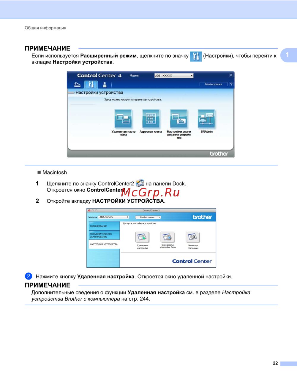 - При использовании для сканирования панели управления устройства brother и компьютера p.332