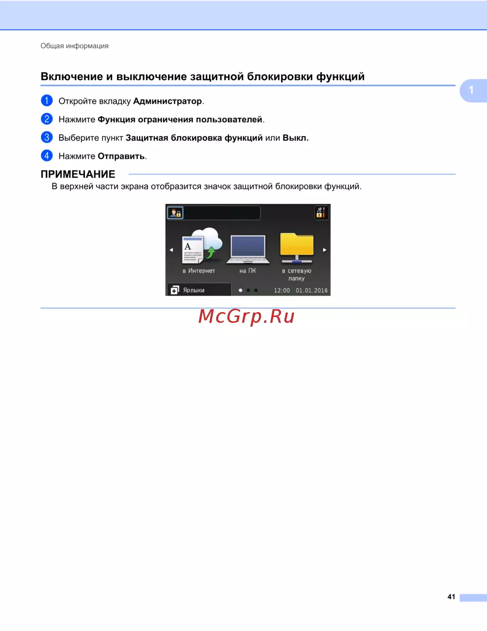- На этом экране представлены функции сканирования в интернет на компьютер и в сетевую папку p.22
