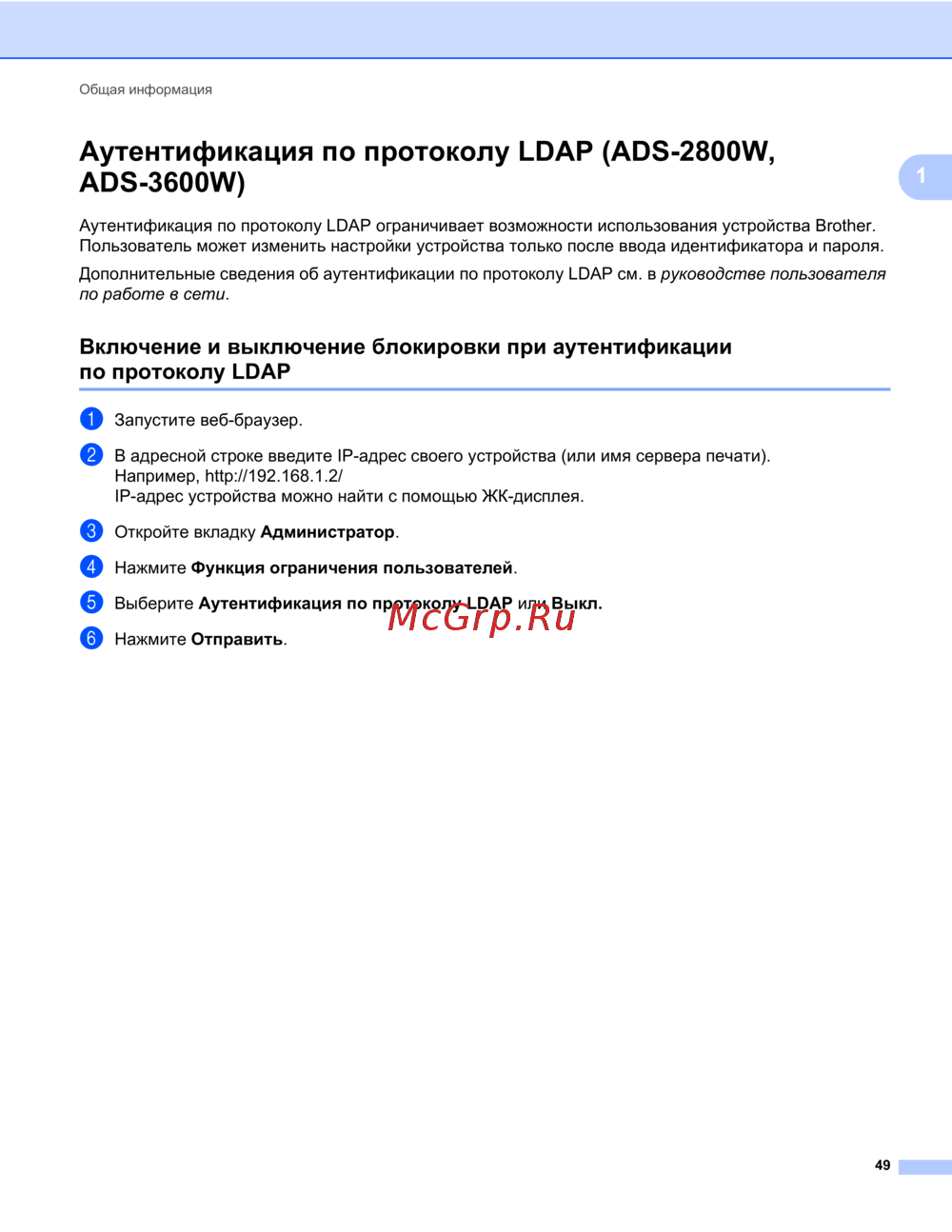 Brother ADS-2400N — аутентификация по протоколу LDAP: Настройки и управление [65/338]