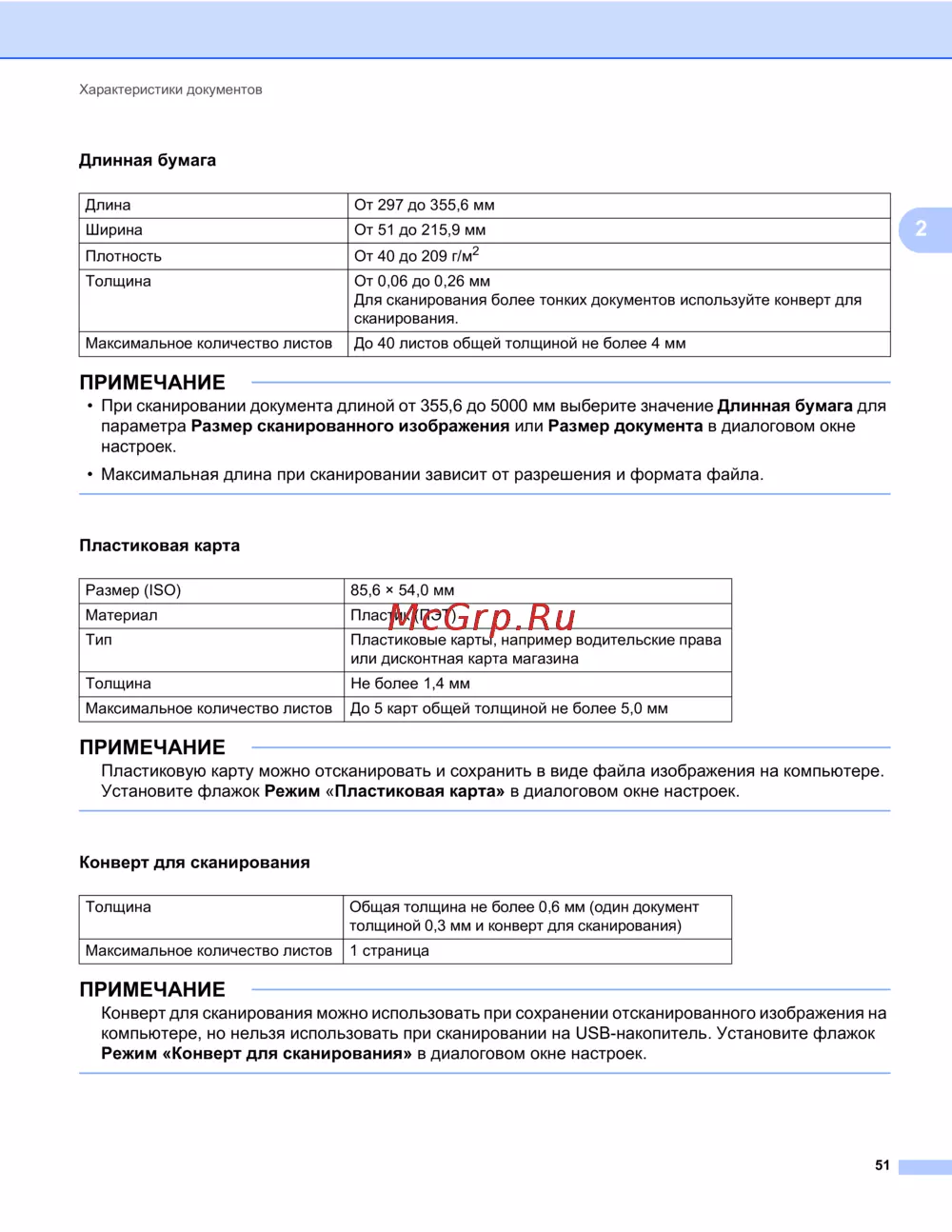 • Максимальная длина при сканировании зависит от разрешения и формата файла.