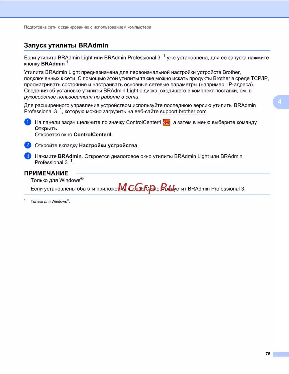 Если установлены оба эти приложения, ControlCenter4 запустит BRAdmin Professional 3.