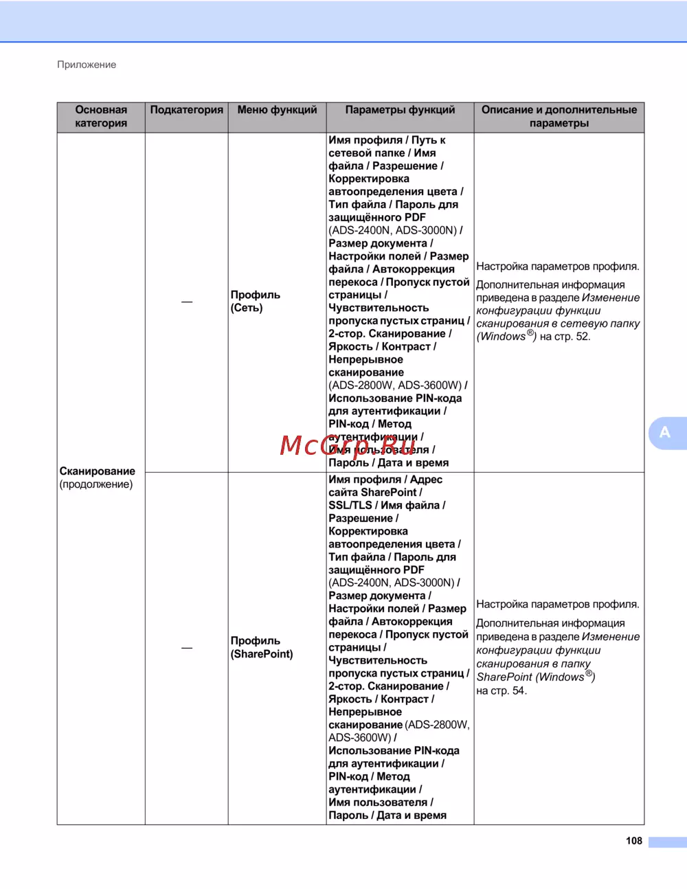- Настройка параметров сканирования на ftp или sftp сервер в сетевую папку или в sharepoint p.110