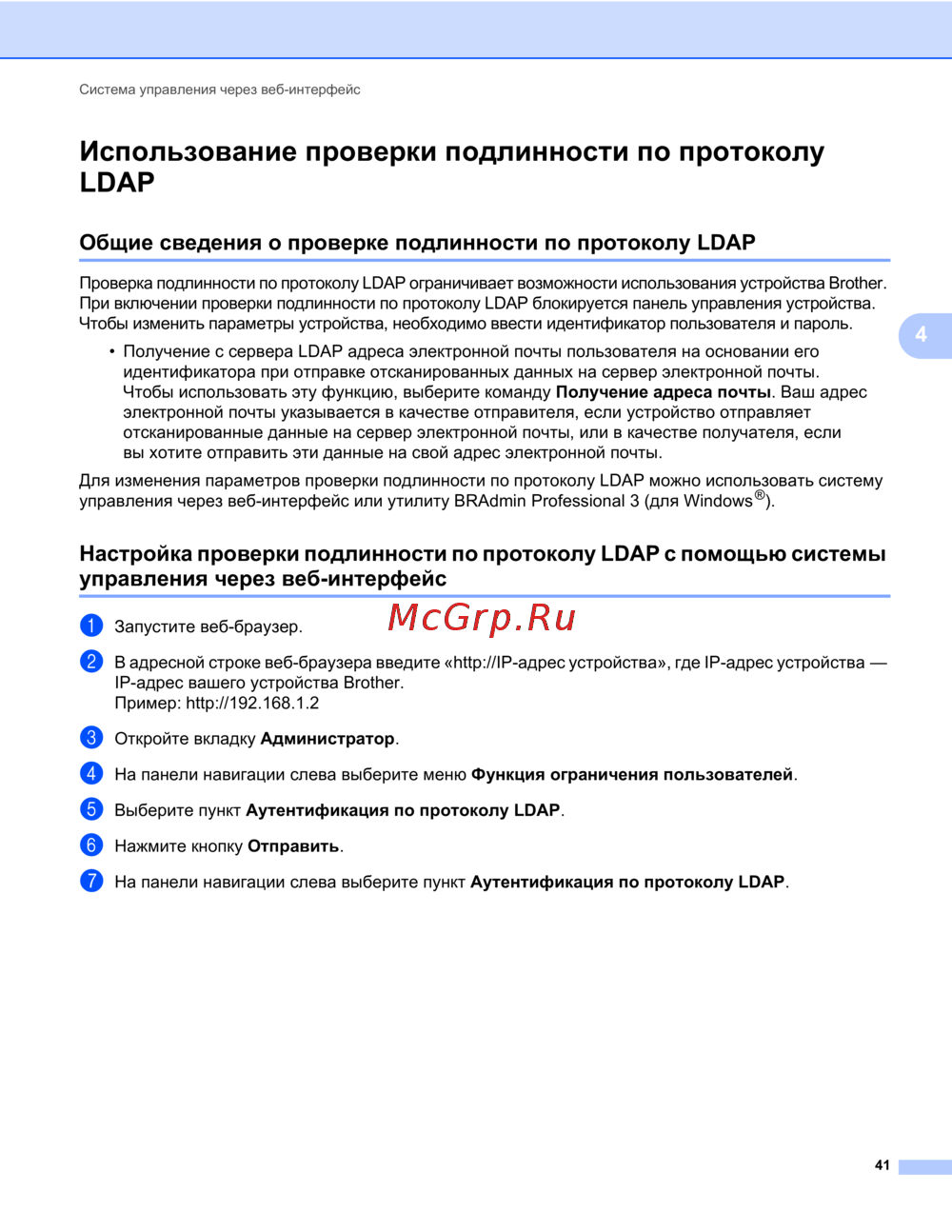 Проверка подлинности по протоколу LDAP ограничивает возможности использования устройства Brother.