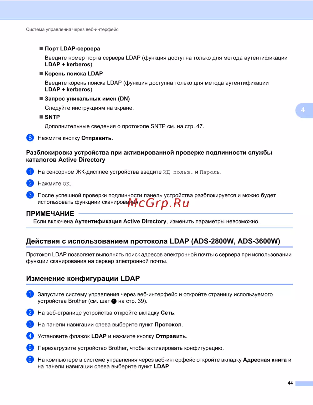 Действия с использованием протокола LDAP (ADS-2800W, ADS-3600W) 4