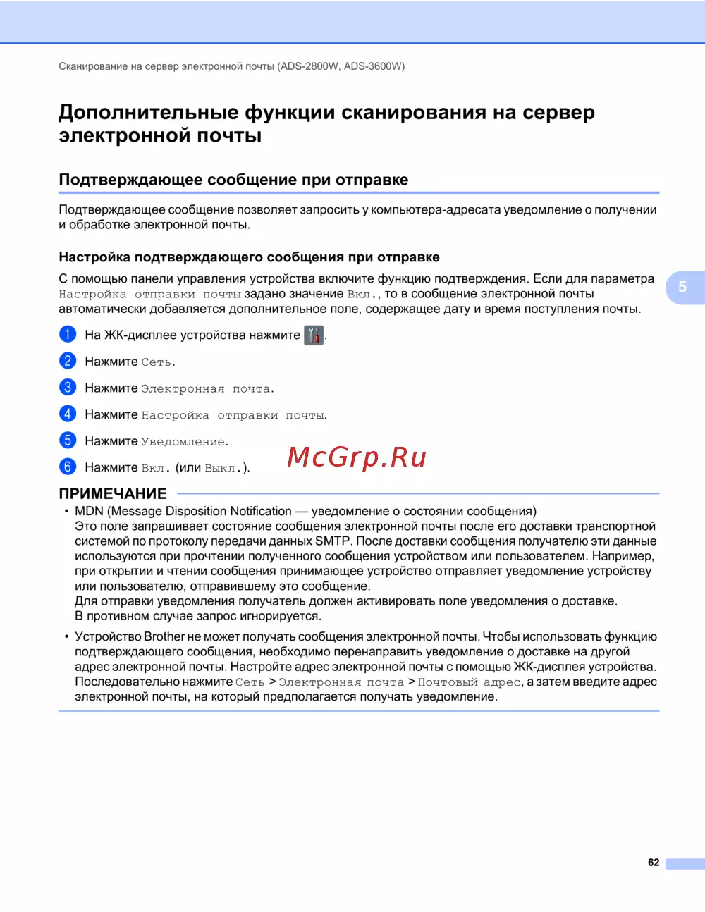 Узнайте, как настроить сканирование на сервер электронной почты и включить подтверждающее сообщение для уведомлений о доставке. Пошаговая инструкция.