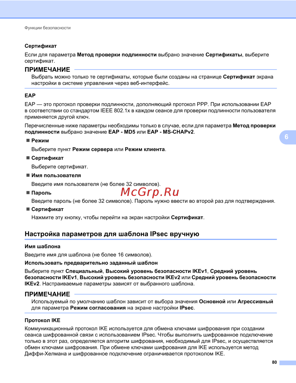 - Поддерживаемые протоколы и функции безопасности p.106
