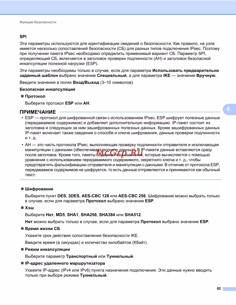 - Поддерживаемые протоколы и функции безопасности p.106