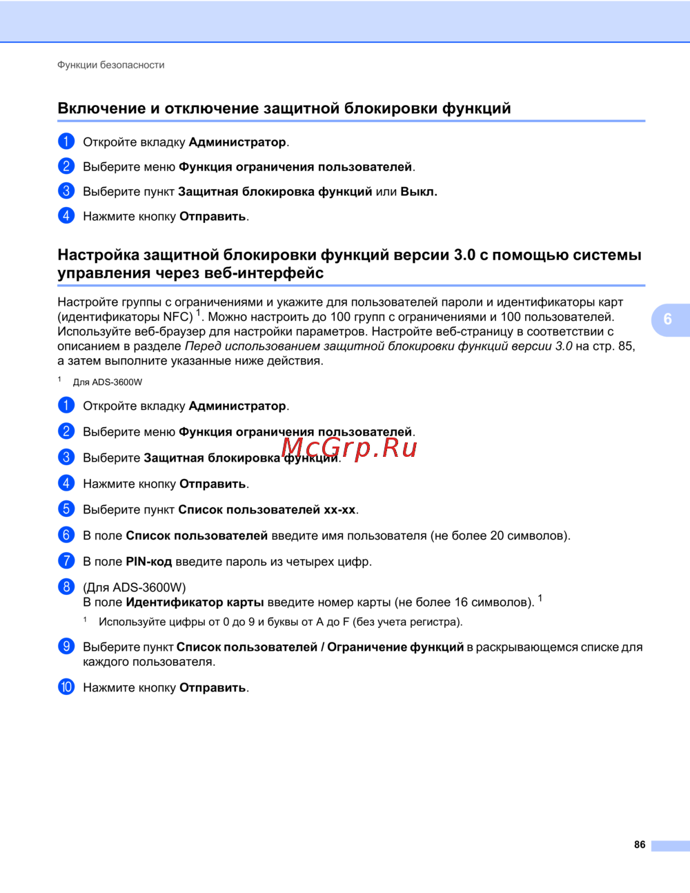 Brother ADS-2800W [90/118] Настройка защитной блокировки функций версии 3 с помощью системы управления через веб интерфейс