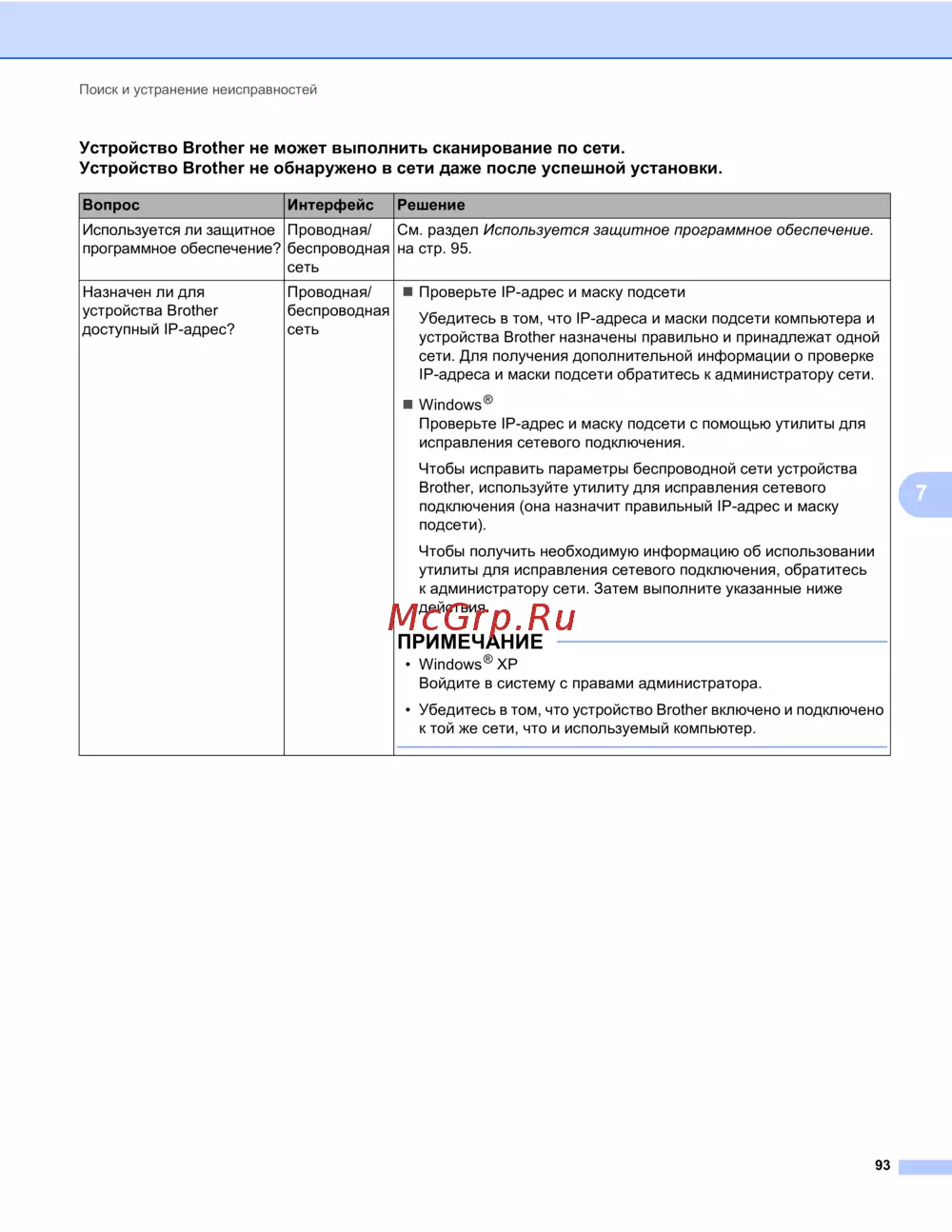 Brother ADS-2800W [97/118] Устройство brother не может выполнить сканирование по сети устройство brother не обнаружено в сети даже после успешной установки