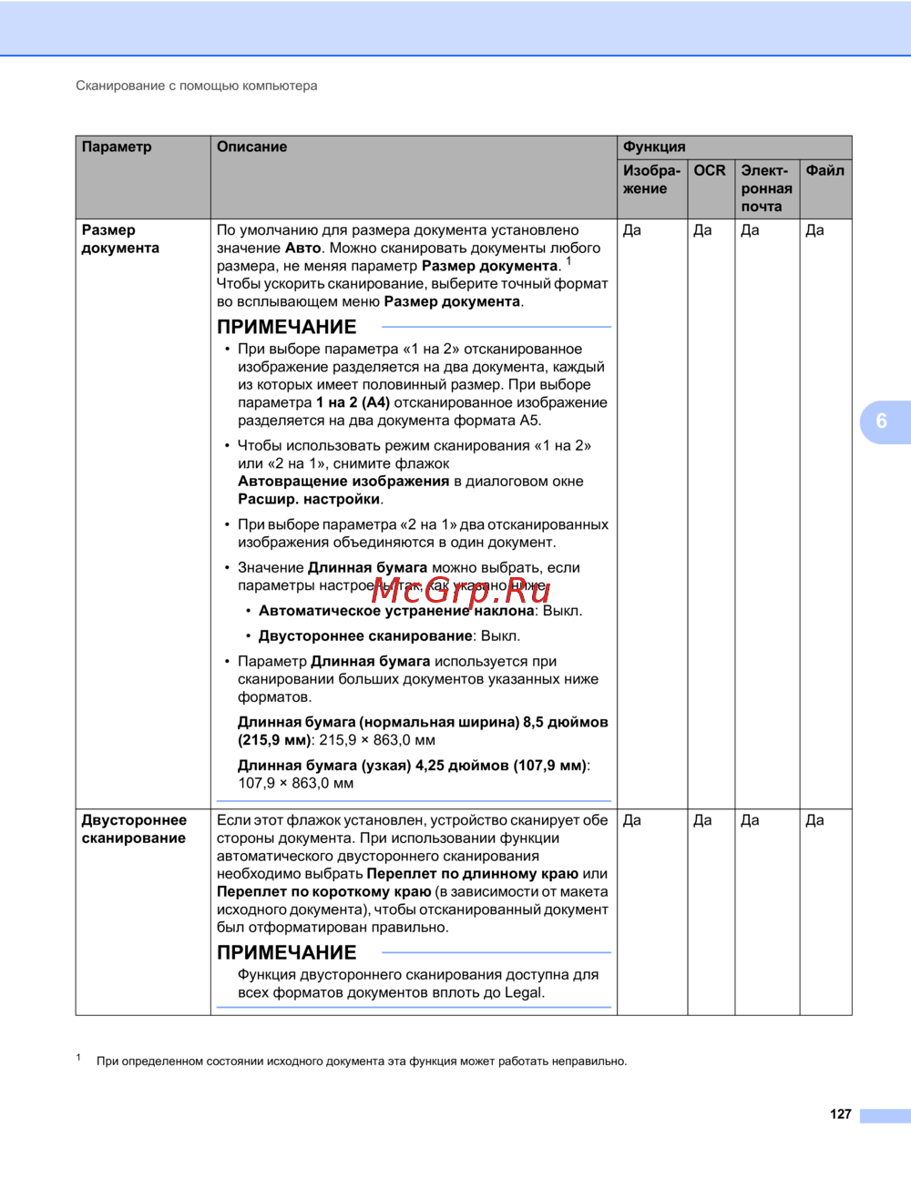 Функция двустороннего сканирования доступна для