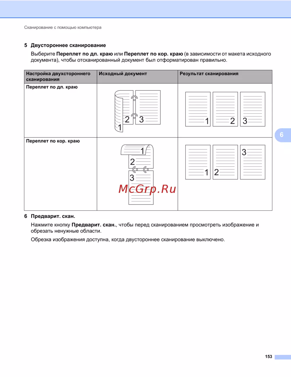 Обрезка изображения доступна, когда двустороннее сканирование выключено.
