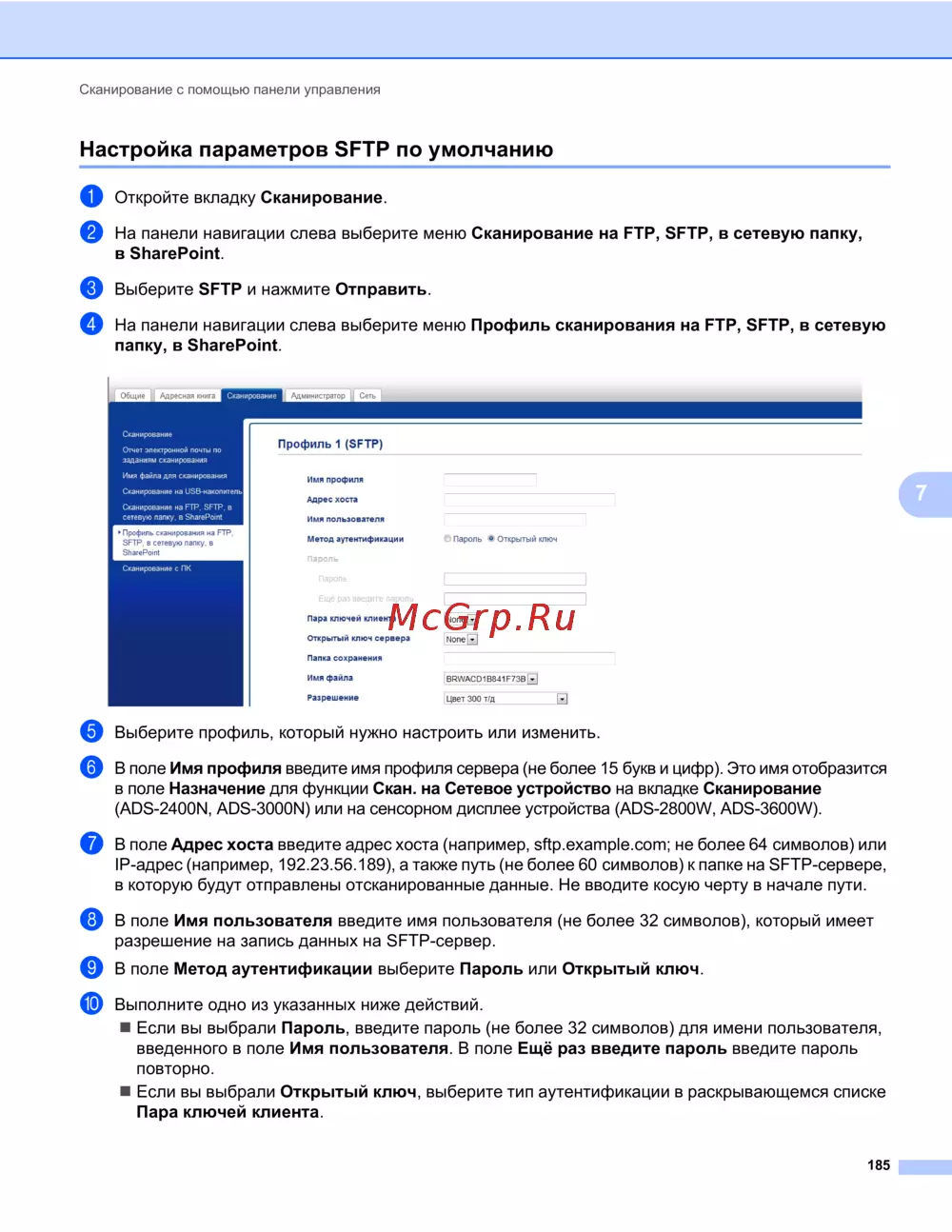 Brother ADS-2800W — настройка SFTP для сканирования: пошаговое руководство [201/338]