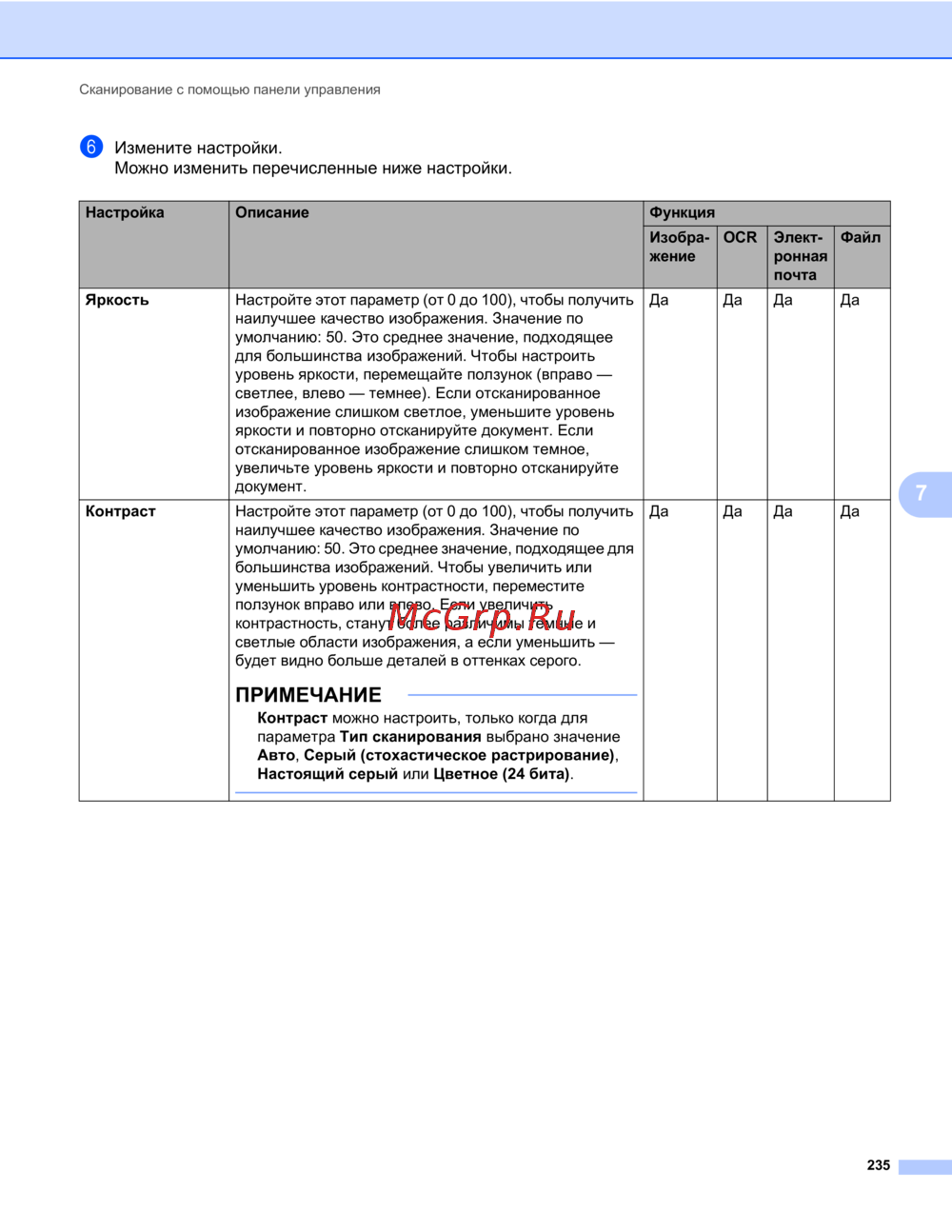- При использовании для сканирования панели управления устройства brother и компьютера p.332