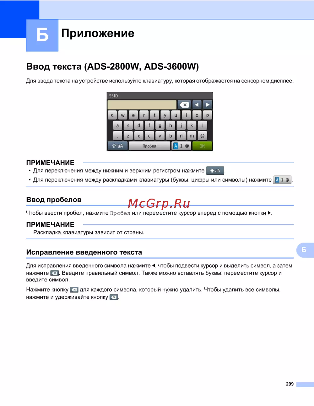Ввод текста (ADS-2800W, ADS-3600W) B