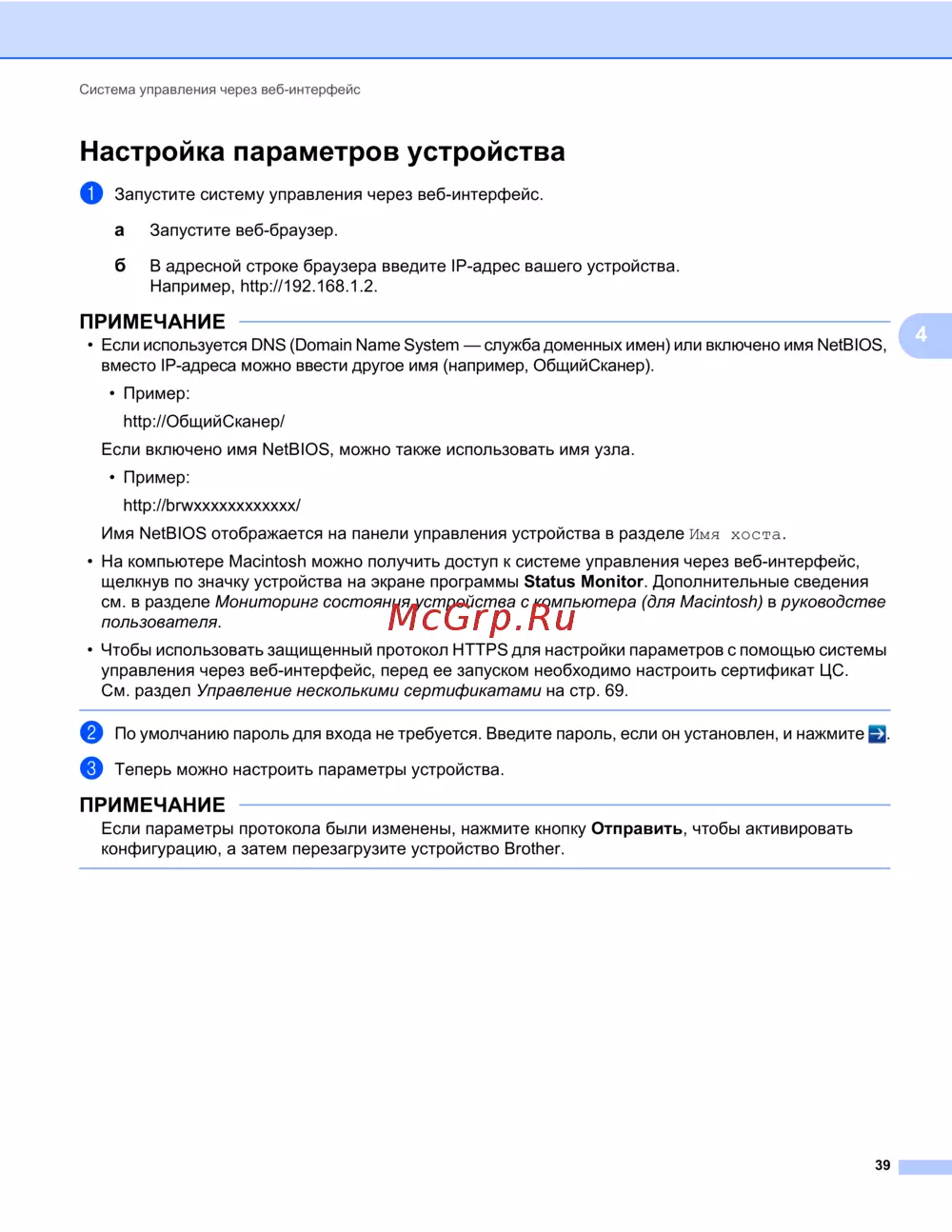 Brother ADS-3000N — настройка сетевого оборудования через веб-интерфейс: инструкция и доступ [43/118]