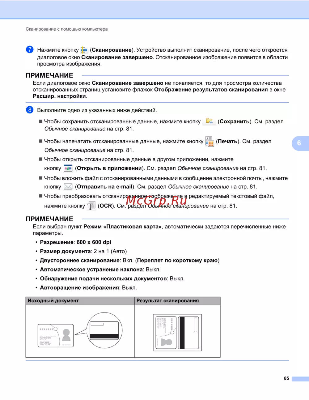 - При использовании для сканирования панели управления устройства brother и компьютера p.332