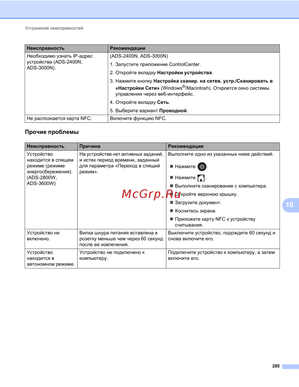 Полные инструкции по устранению неисправностей для устройств Brother. Решение проблем с подключением, NFC, энергосбережением и другими.