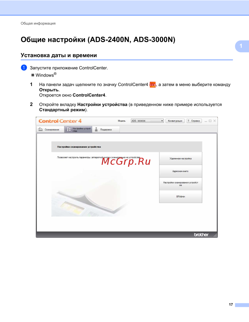 Общие настройки (ADS-2400N, ADS-3000N) 1