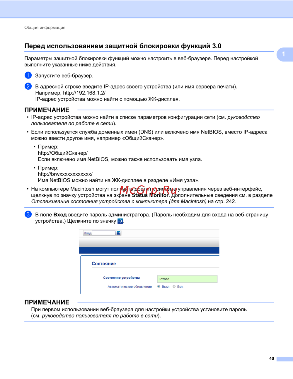 •IP-адрес устройства можно найти в списке параметров конфигурации сети (см. руководство