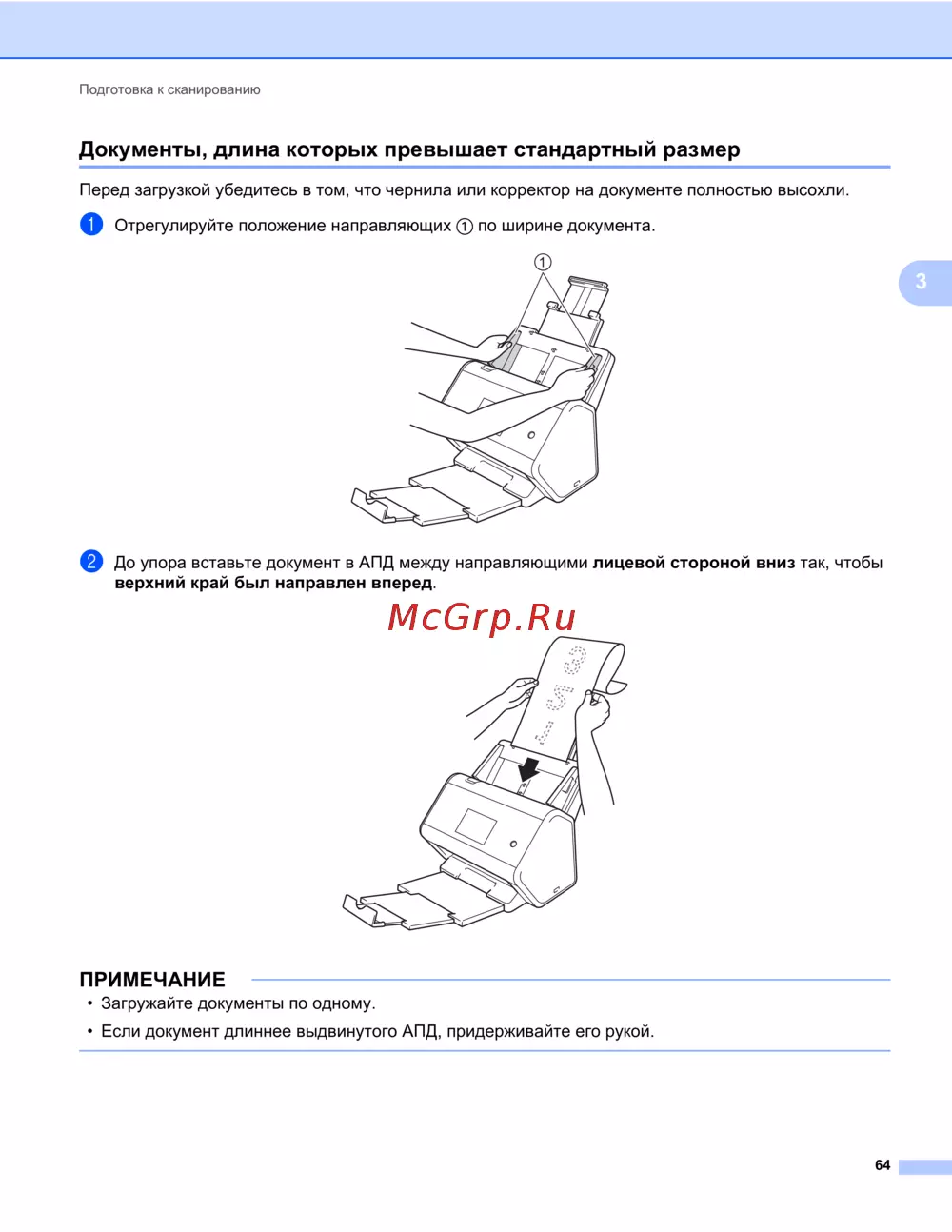 • Если документ длиннее выдвинутого АПД, придерживайте его рукой.