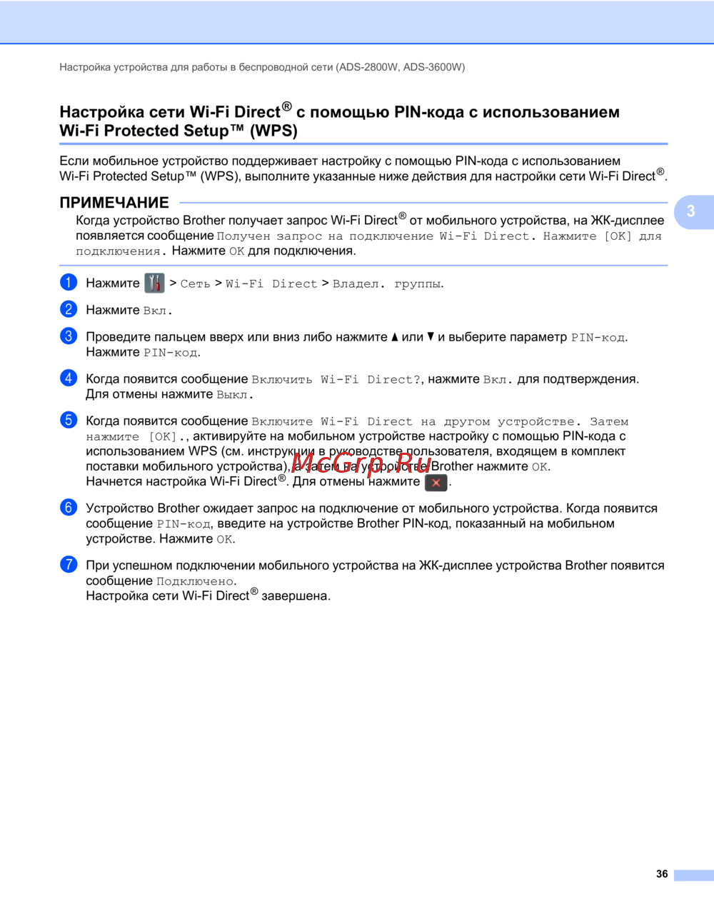 Wi-Fi Protected Setup™ (WPS), выполните указанные ниже действия для настройки сети Wi-Fi Direct