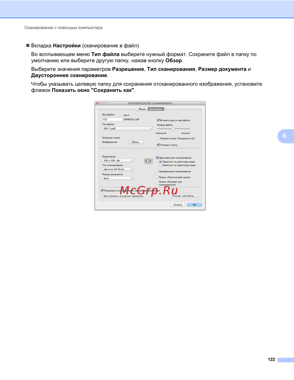 - При использовании для сканирования панели управления устройства brother и компьютера p.332