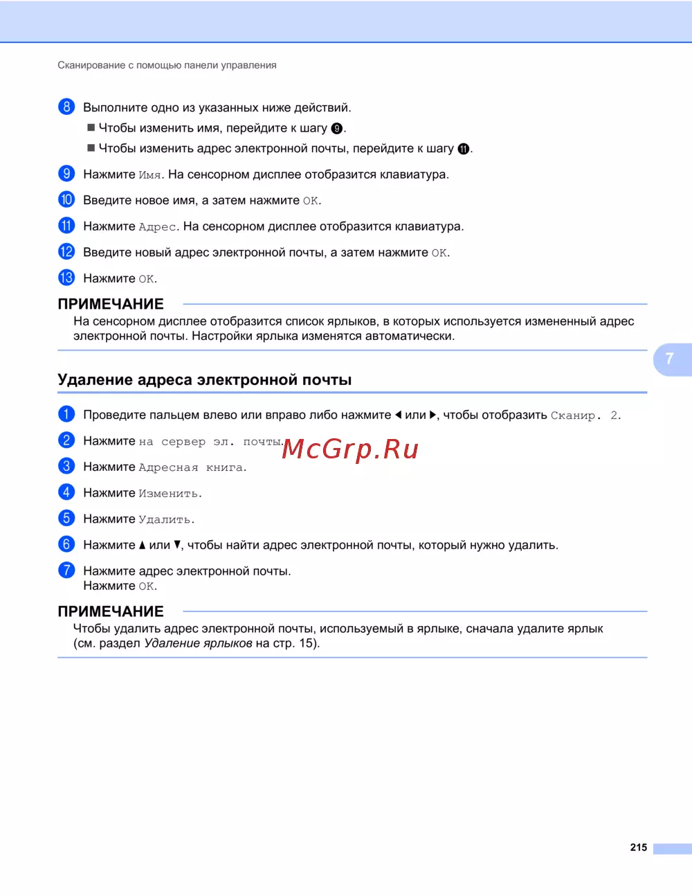 ![Brother ADS-3600W [231/338] Удаление адреса электронной почты](/views2/1250867/page231/bge7.png)