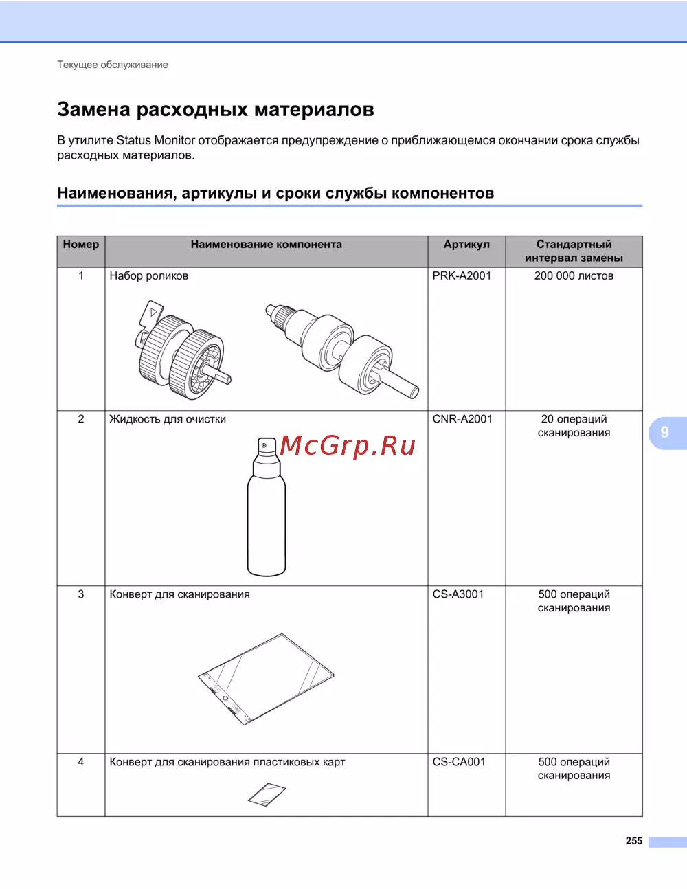 - Замена расходных материалов p.271