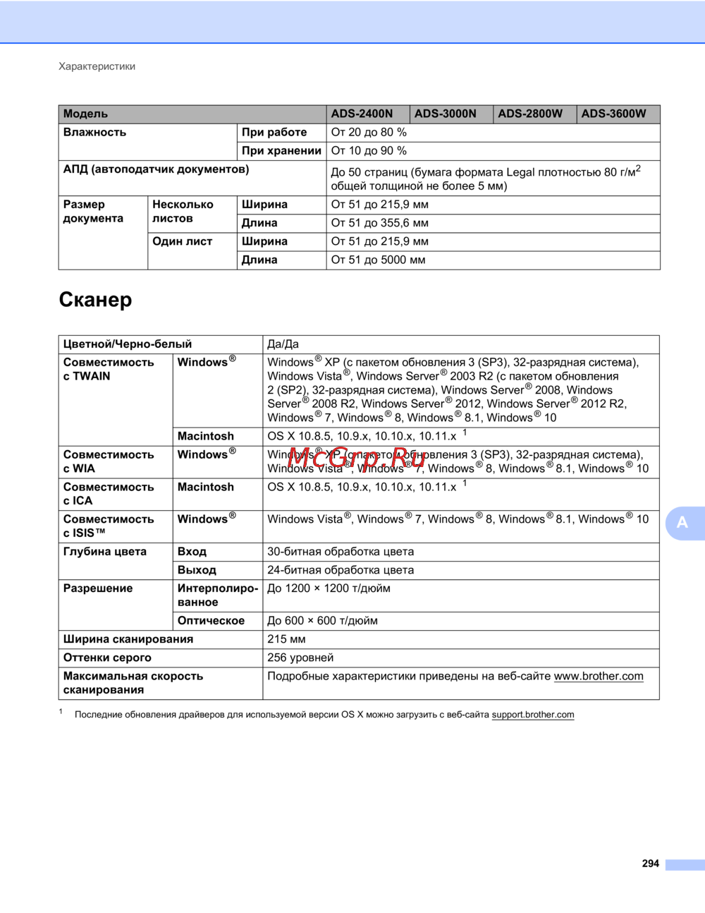 Модель ADS-2400N ADS-3000N ADS-2800W ADS-3600W