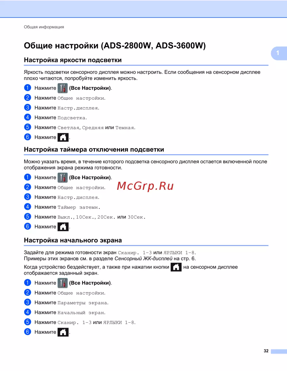 Общие настройки (ADS-2800W, ADS-3600W) 1