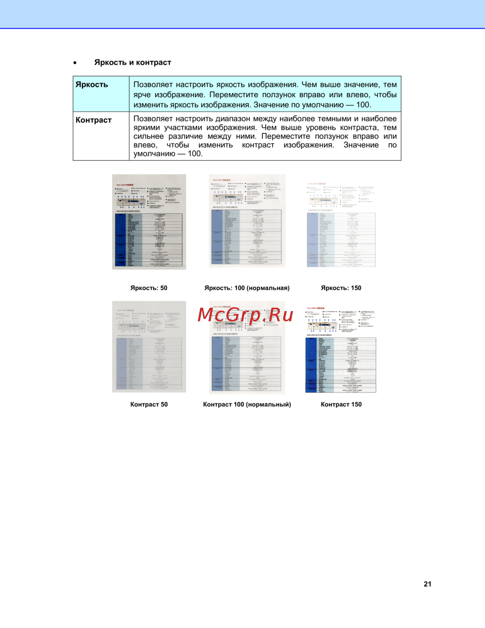 Позволяет настроить яркость изображения. Чем выше значение, тем