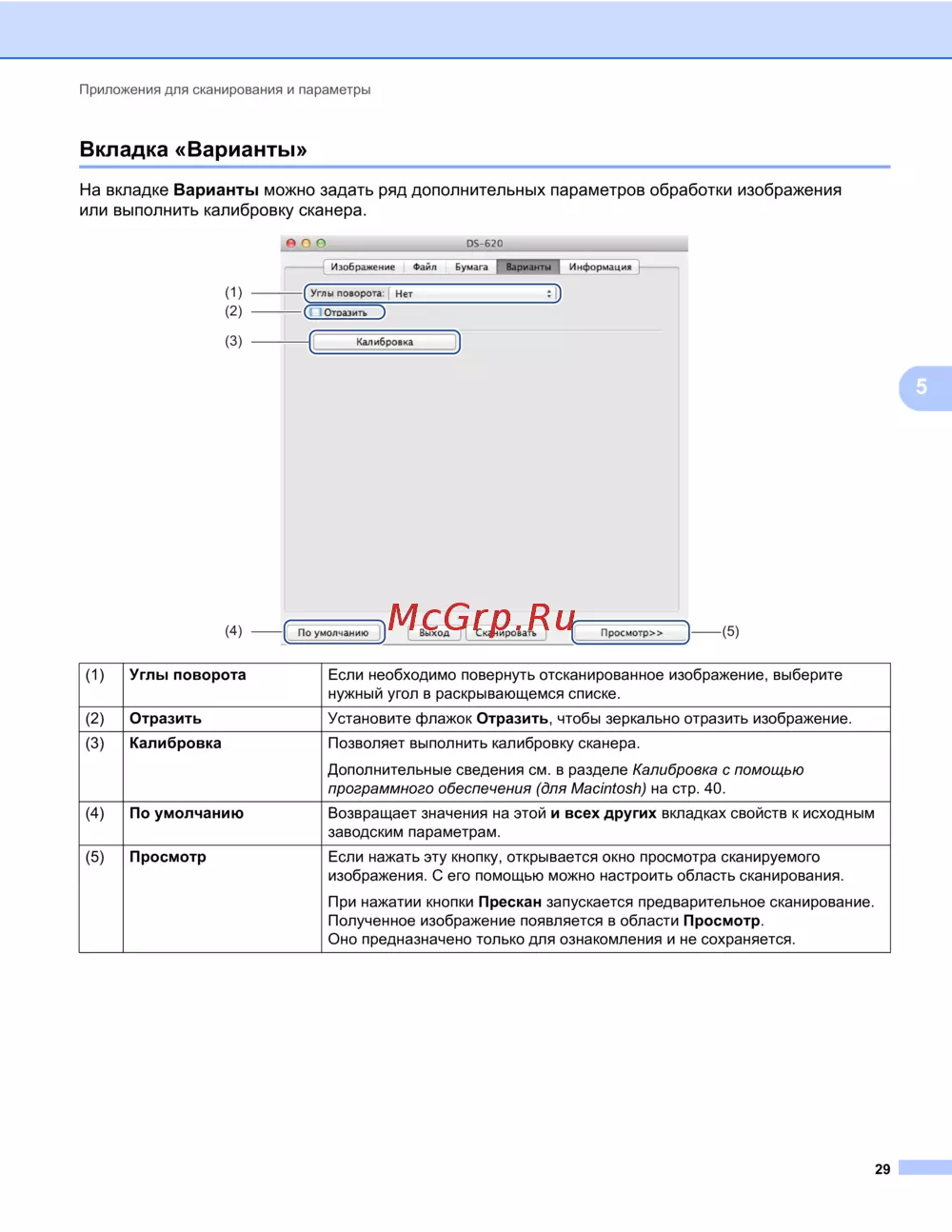 Узнайте о параметрах обработки изображений в приложениях для сканирования. Настройте углы поворота, зеркальное отражение и выполните калибровку сканера.