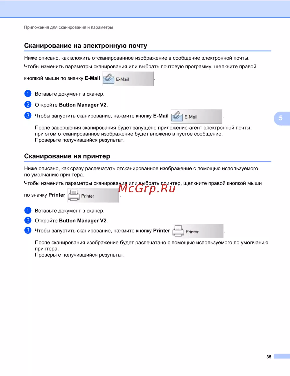 - Кнопки сканирования на панели button manager v2 для window p.39