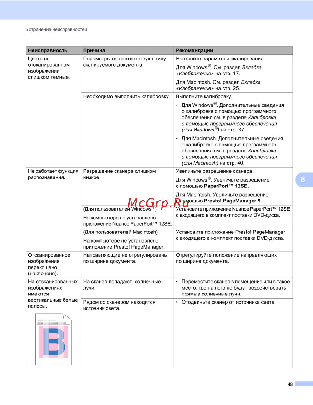 - Параметры не соответствуют типу сканируемого документа настройте параметры сканирования p.53