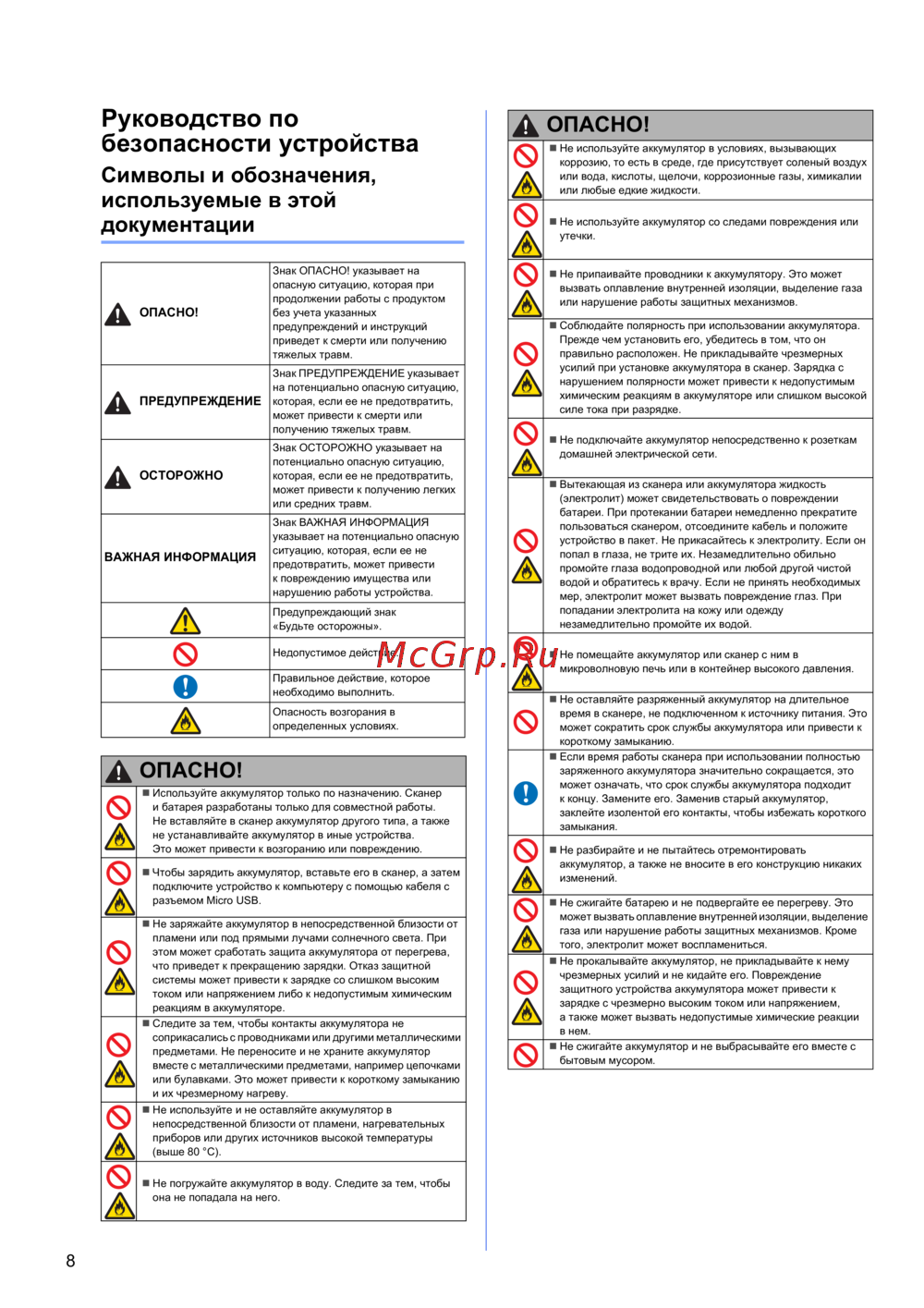 Brother DS-820W — руководство по безопасности использования аккумуляторов и устройств [8/10]