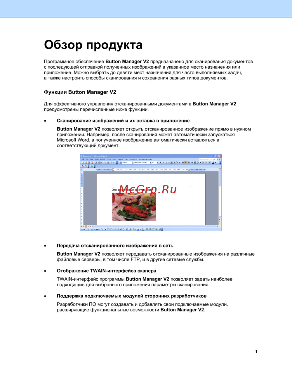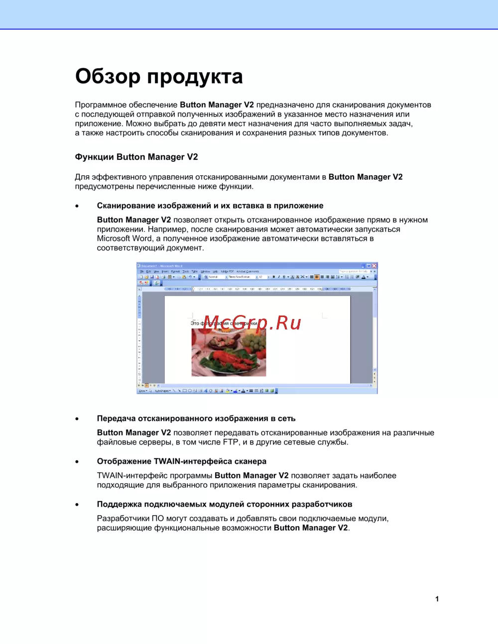 Программное обеспечение Button Manager V2 предназначено для сканирования документов