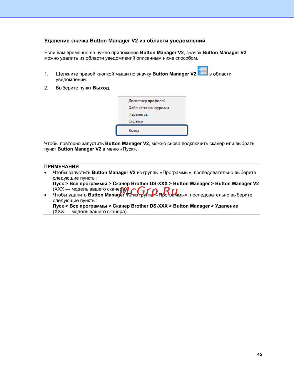 Brother DS-820W [48/49] Удаление значка button manager v2 из области уведомлений